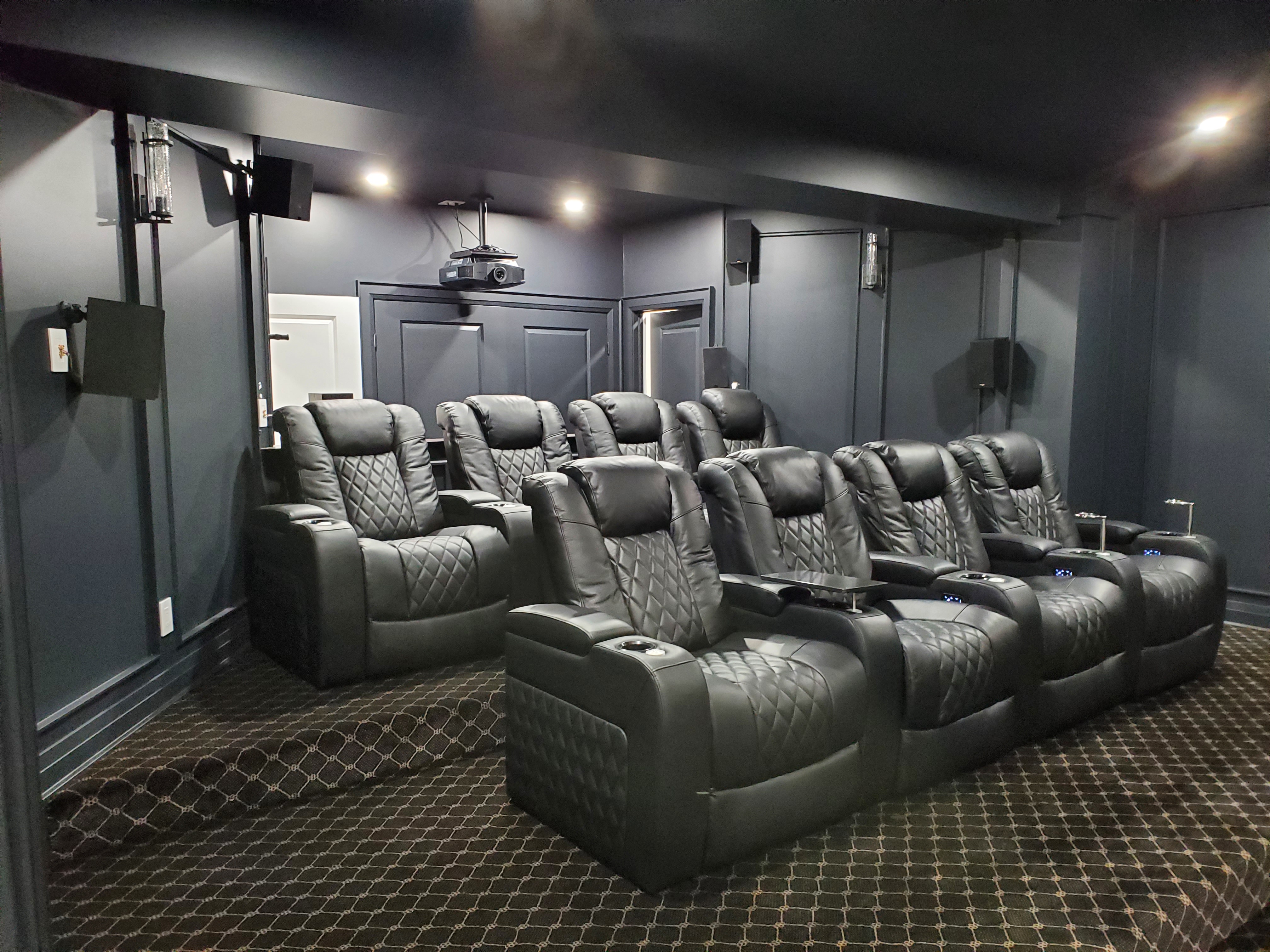 Custom soundproofing, recessed lighting, and wiring for the ultimate movie night experience